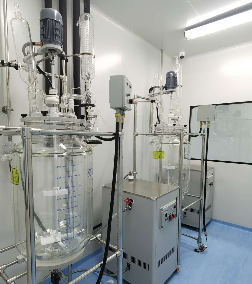 華清光電建設(shè)有2600平米合成車間,一個500平米標準化潔凈車間,兩個中試級實驗室,各類反應(yīng)釜80多臺,可以滿足零下100度至200度反應(yīng)條件,設(shè)計年產(chǎn)能為50噸,可同時開展20個以上生產(chǎn)項目。